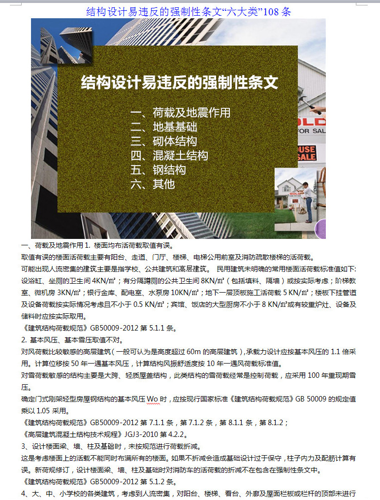 結(jié)構(gòu)設(shè)計(jì)易違反的強(qiáng)制性條文“六大類(lèi)”108條