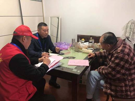志愿者在天逸華府杏園南苑居民家進行宣傳走訪