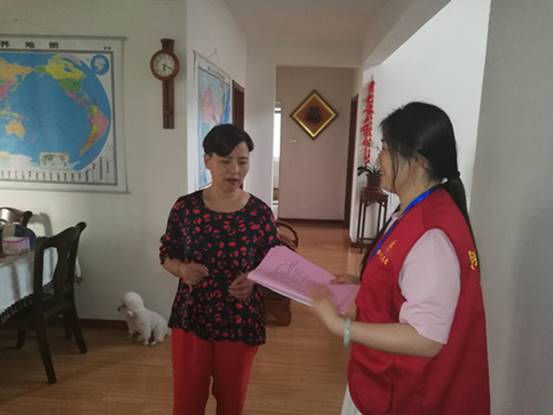 志愿者在文昌花園7號樓居民家進行走訪宣傳