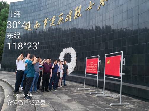 6月28日上午8點,大家懷著無比崇敬的心情瞻仰了“皖南事變”烈士陵園,向皖南事變烈士陵園敬獻了花籃,集體默哀,寄托哀思,并向為民族獨立和人民解放做出巨大貢獻的新四軍烈士致敬!