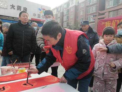 活動現(xiàn)場,志愿者們潑墨揮毫,一幅幅吉祥喜慶的春聯(lián),為即將到來的虎年新春帶來了別樣的溫暖。志愿者們有求必應(yīng),將寫好的福字、春聯(lián)送給社區(qū)居民,為他們送去虎年祝福。整個(gè)活動現(xiàn)場充滿歡樂祥和的氣氛。