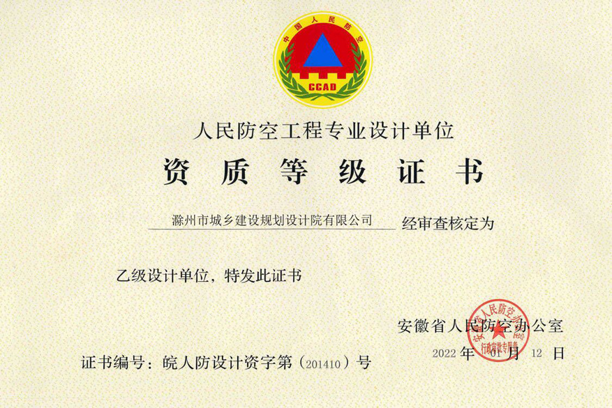 人防設(shè)計資質(zhì)證書