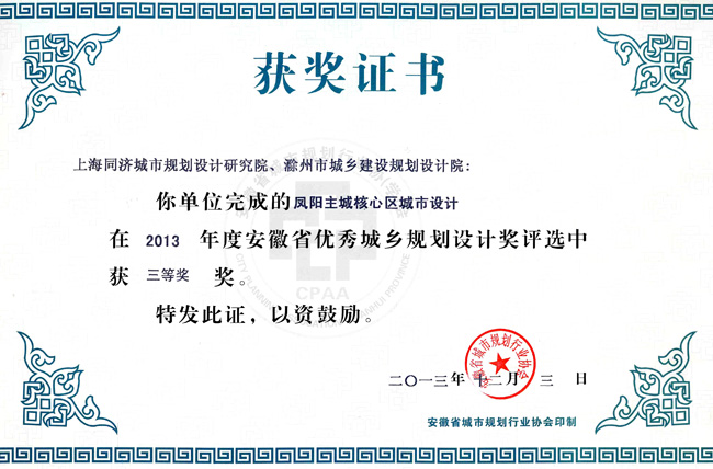 明光市中心城區(qū)規(guī)劃獲獎證書